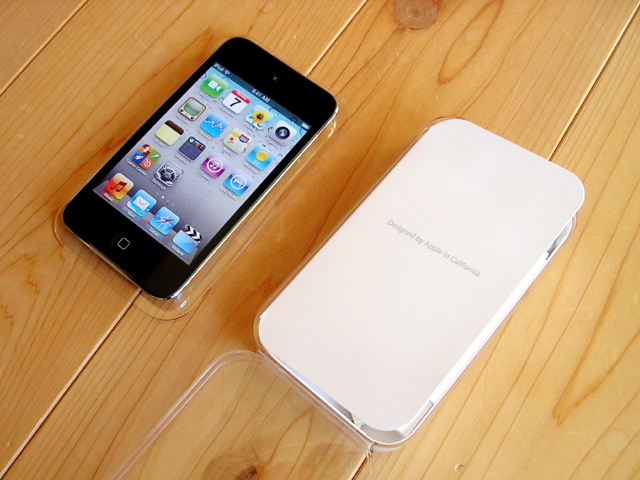 アイポッドタッチは紙箱に入っているのかと思いきや、透明のアクリルのケースに入っていた。